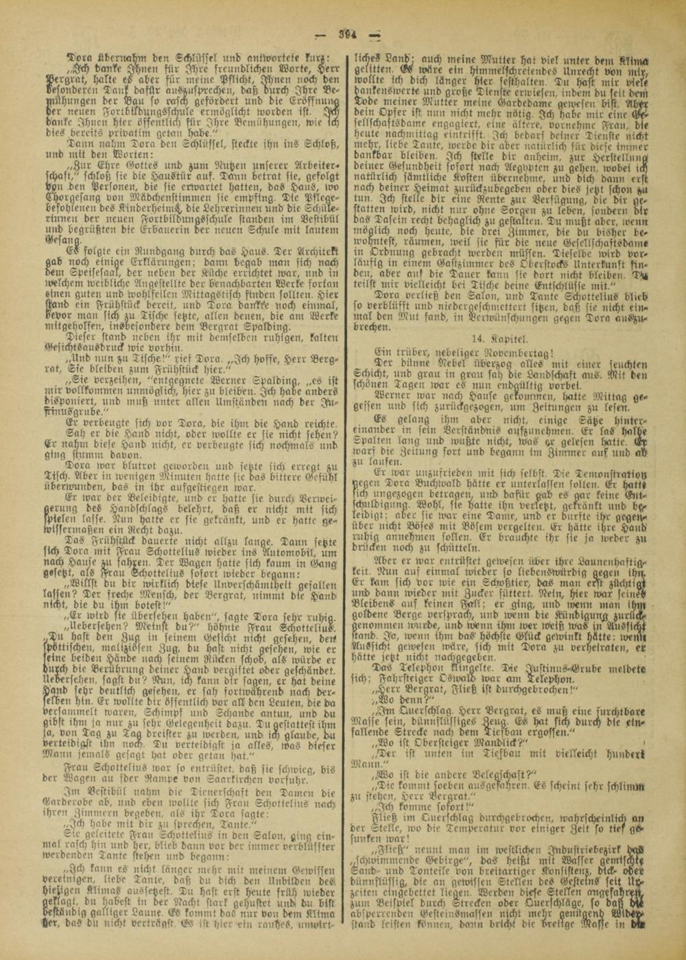 ES folgte ein Rundgang durch das Haus. Der Architekt gab noch einige Erklärungen; dann begab man sich nach dem Speiscsaal, der neben der Küche errichtet war, und in ivelchem weibliche Angestellte der benachbarten Werke fortan einen guten und wohlfeilen Mittagstisch finden sollten. Hier stand ein Frühstück bereit, und Tora dankte noch einmal, bevor man sich zu Tische setzte, allen denen, die am Werke mitgeholfen, insbesondere dem Bcrgrat Spalding.