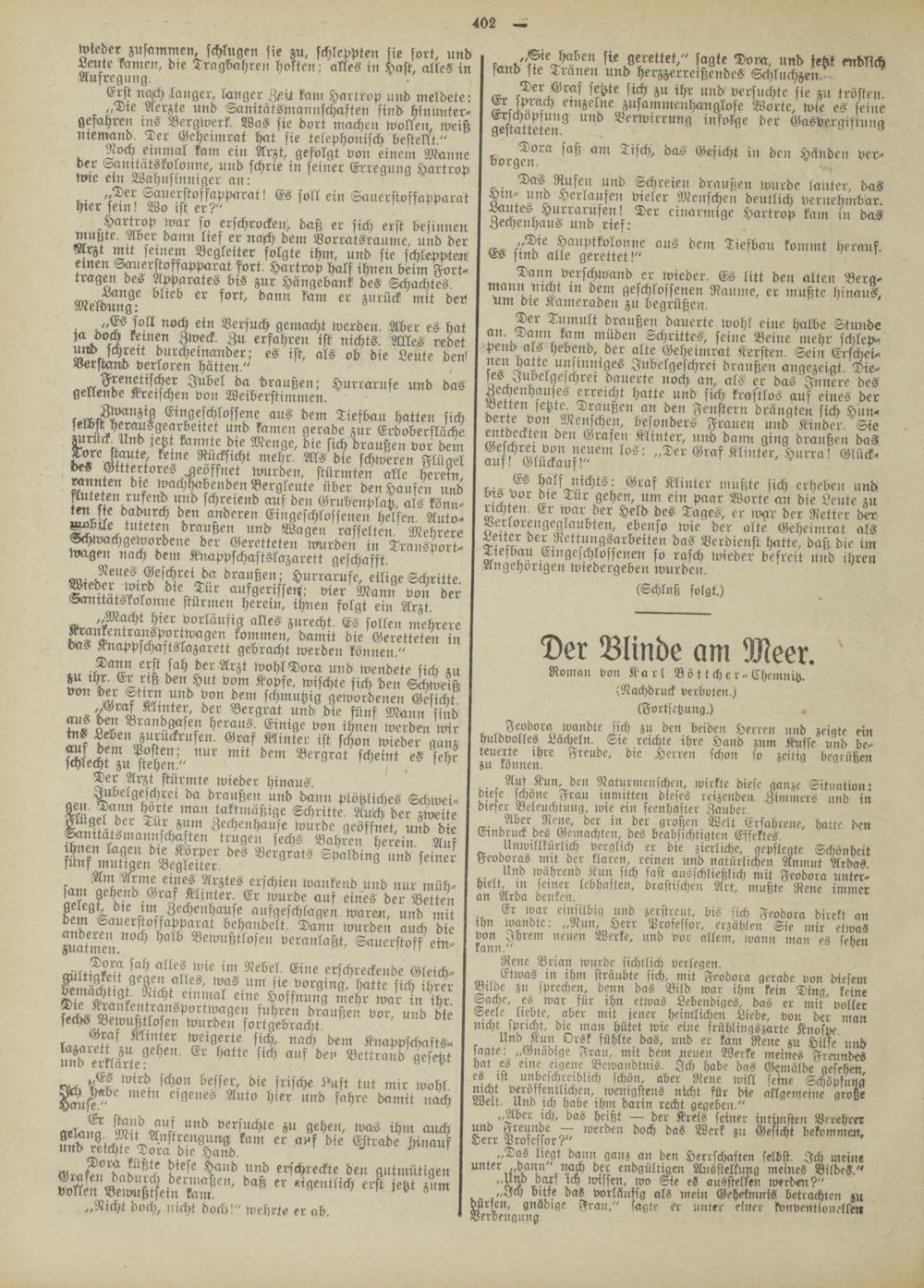 „Graf Kliuter, der Bergrat und die fünf Mann sind aus den Brandgasen heraus. Einige von ihnen werden wir inS Leben zurückrufen. Graf Muter ist schon wieder ganz auf dem Posten; nur mit dem Bergrat scheint es sehr schlecht zu stehen." i >