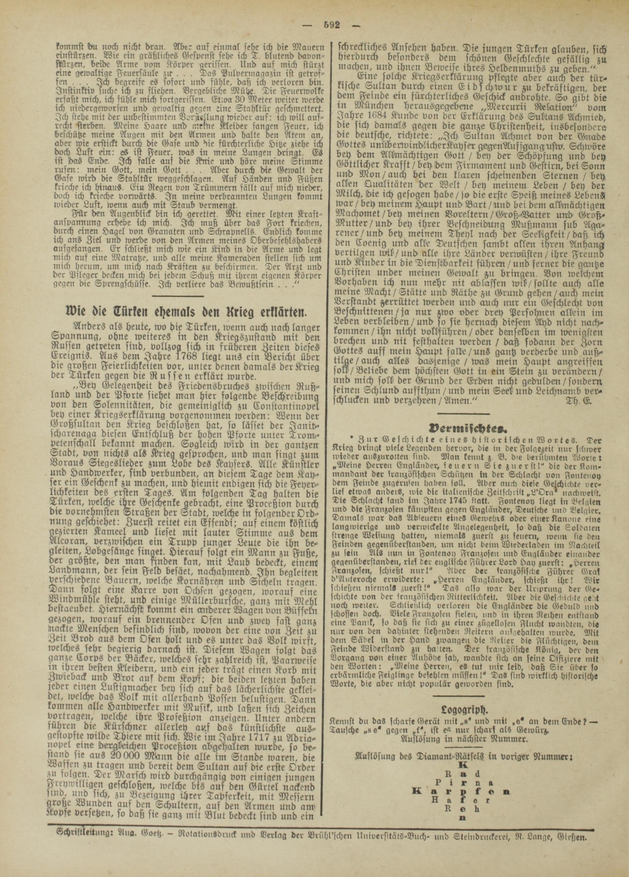 wie die Türken ehemals den Krieg erklärten.
