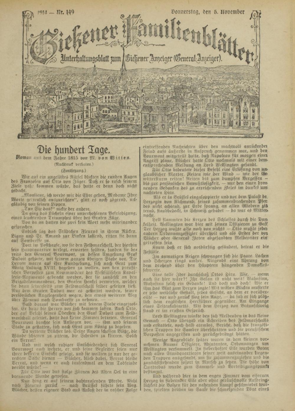 Und mit welch ruhiger Entschiedenheit sich General Bourmont auch wehrte, er und seine Begleiter seien nur ihrer besseren Einsicht gefolgt, und sic wollten ja nur der gerechten Sache dienen — Blücher, blieb dabei, Verrat bleibe Verrat, und wenn er auch tausendmal an dem Todfeinde verübt würde! —