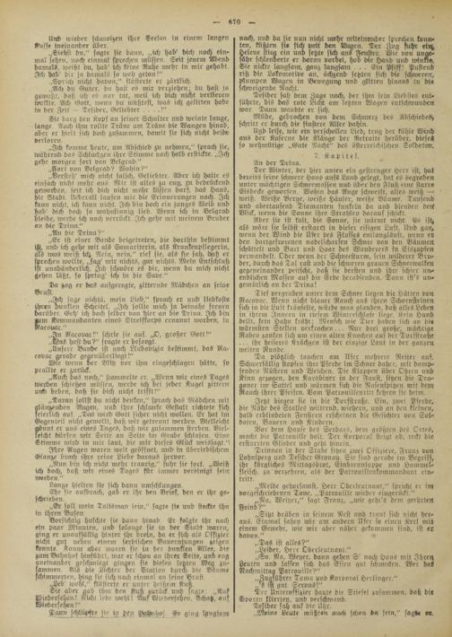 „Ich komme heute, um Abschied zu nehmen," sprach sie, während das Schluchze» ihre Stimnre noch halb erstickte. „Ich gehe morgen fort von Belgrad."
