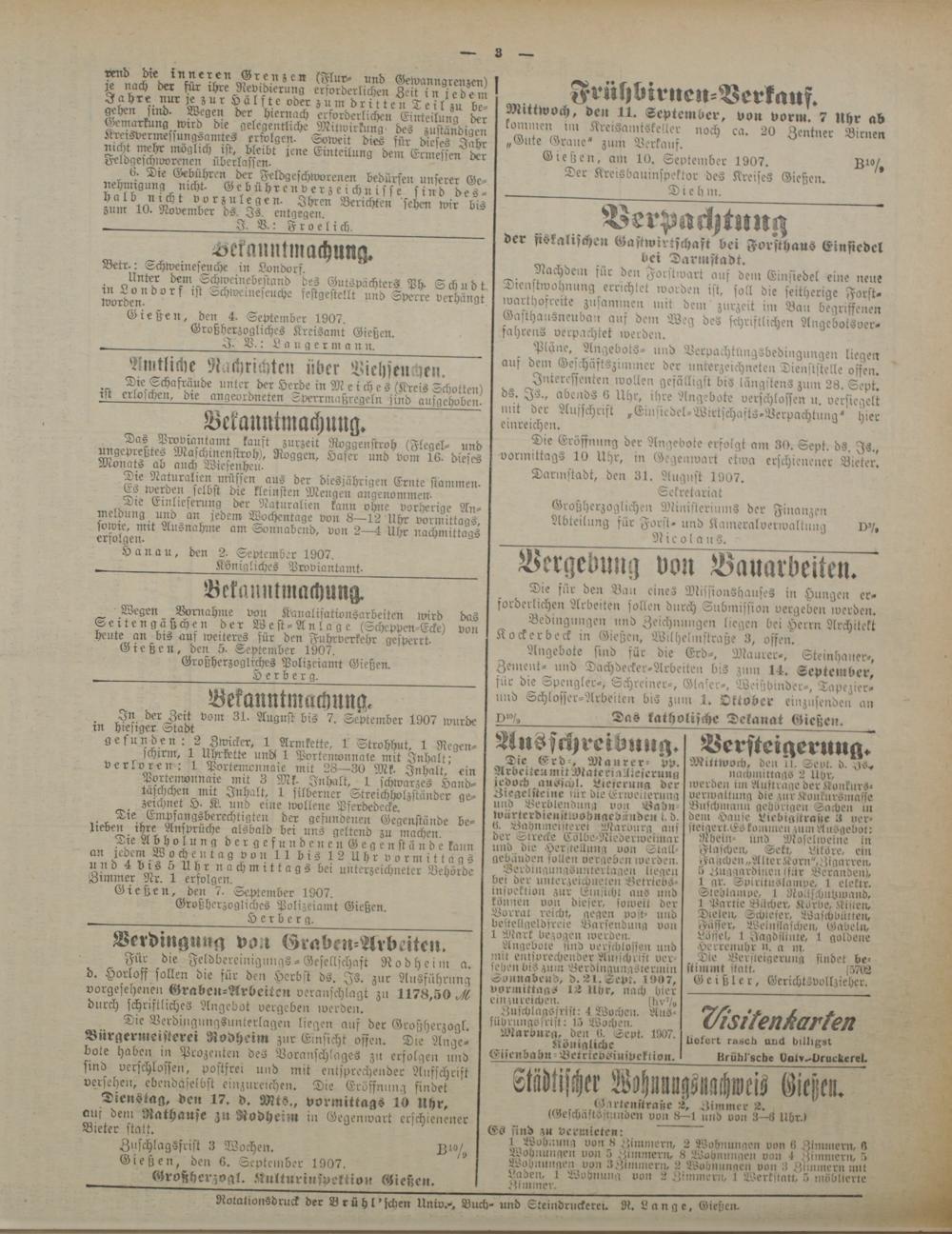 Tror^n b°rf Xt ö^1DCine|eiiC^ festgeftellt und Sperre verhängt Gießen, den 4. September 1907.