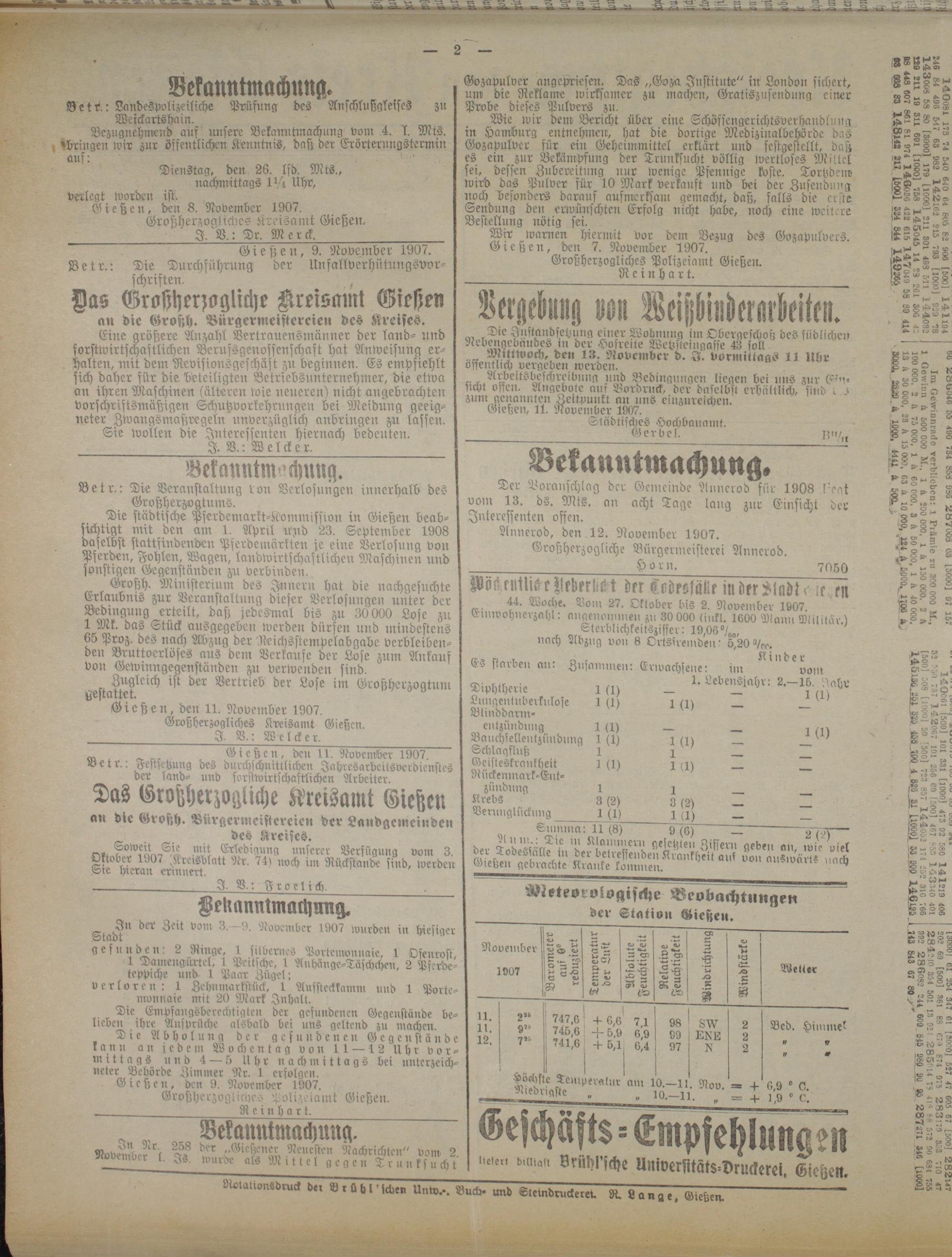Wir warnen hiermit vor dem Bezug des Gozapulvers. Gießen, den 7. November 1907.