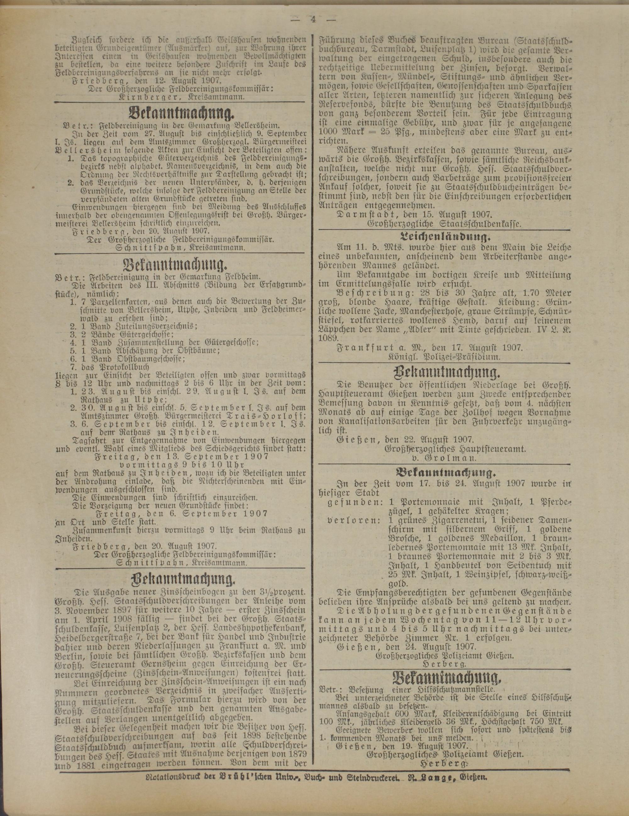 ! Gießen, den 19. August 1907. \