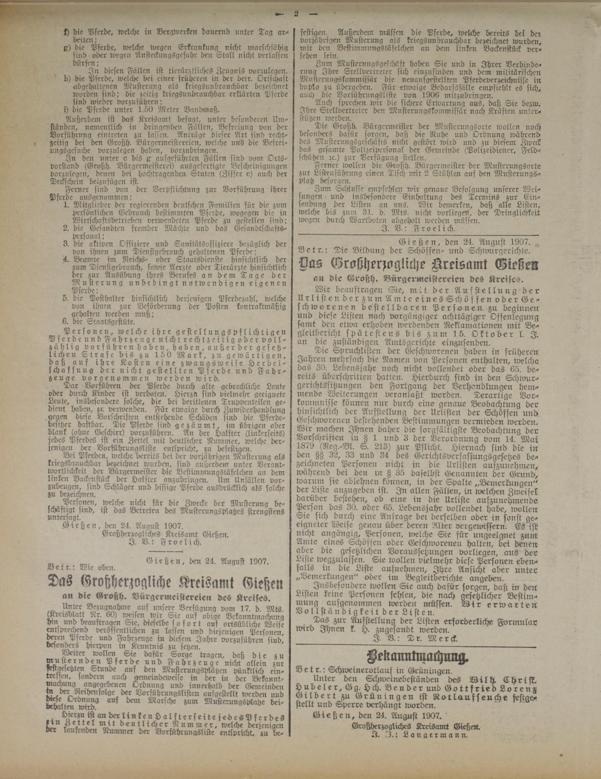 Gießen, den 24. August 1907. Betr.: Die Bildung der Schöffen- und Schwurgerichte. Has Grohherwgüche SreisanN Gießen an die Großh. Bürgermeistereien des Kreises.