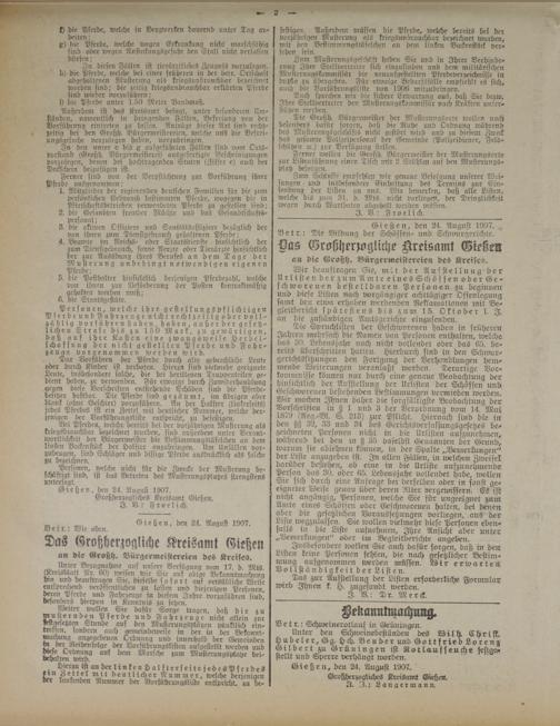 Betr.: Wie oben. ließen, den 24. August 1907.