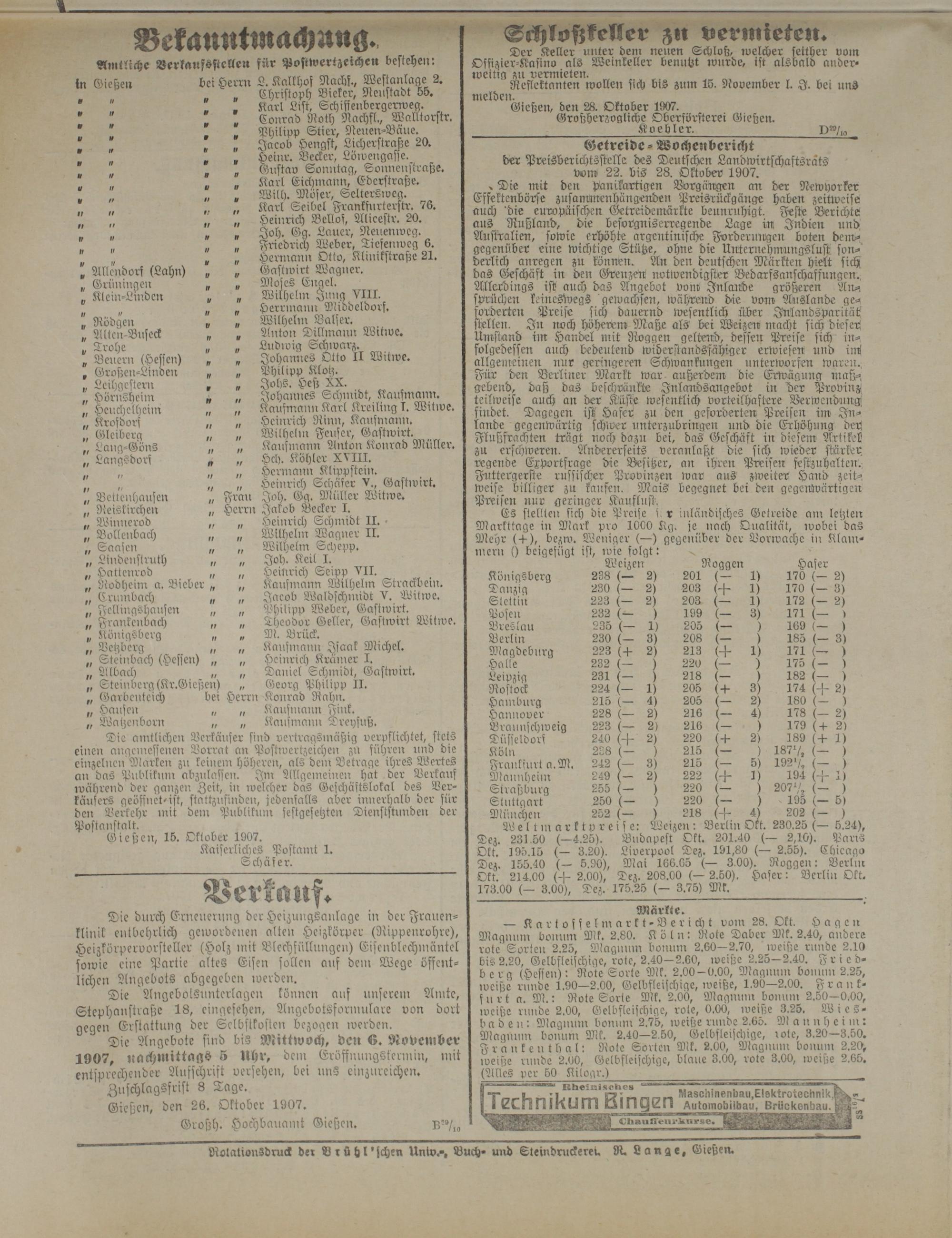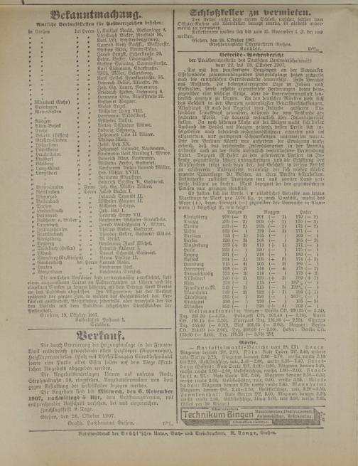 Karl Seibel Frankfurterstr. 76. Heinrich Bellos, Alicestr. 20. Joh. Gg. Lauer, Neuenweg. Friedrich Weber, Tiefenweg 6. Hermann Otto, Klinikstraße 21. Gastwirt Wagner.