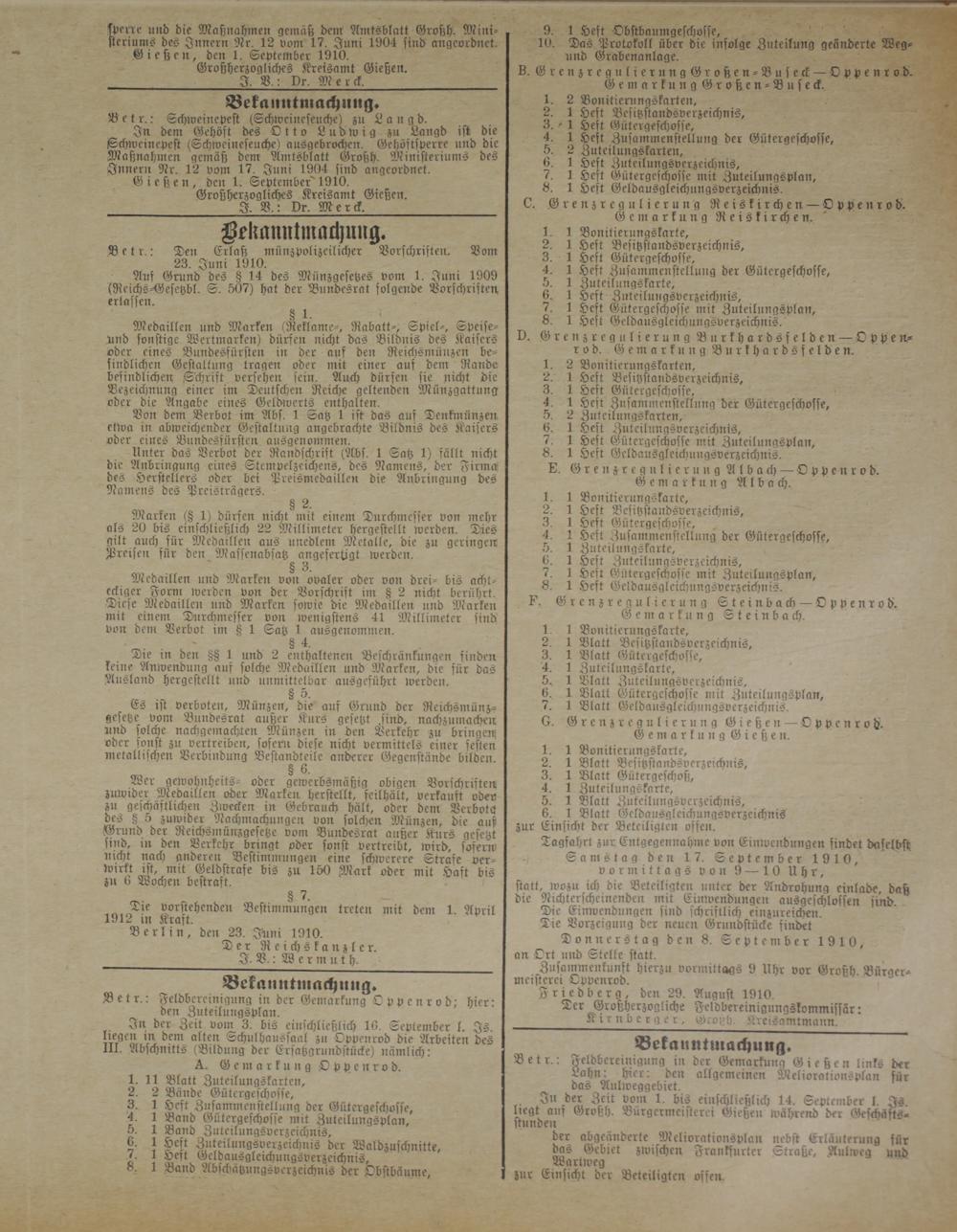 Gießen, den 1. September 1910.