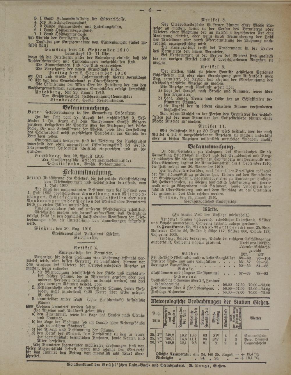Freitag den 2. September 1910 tftt Ort und Stelle statt. Zusammenkunft hierzu .vormittags 10 Uhr vor den: Gemeindehaus zu Ober-Hörgern.