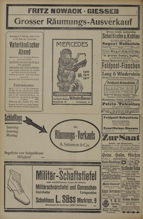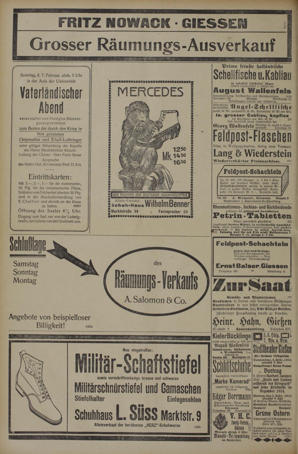 Donnerstag, 4. Febr. 1915 abends 8 Uhr