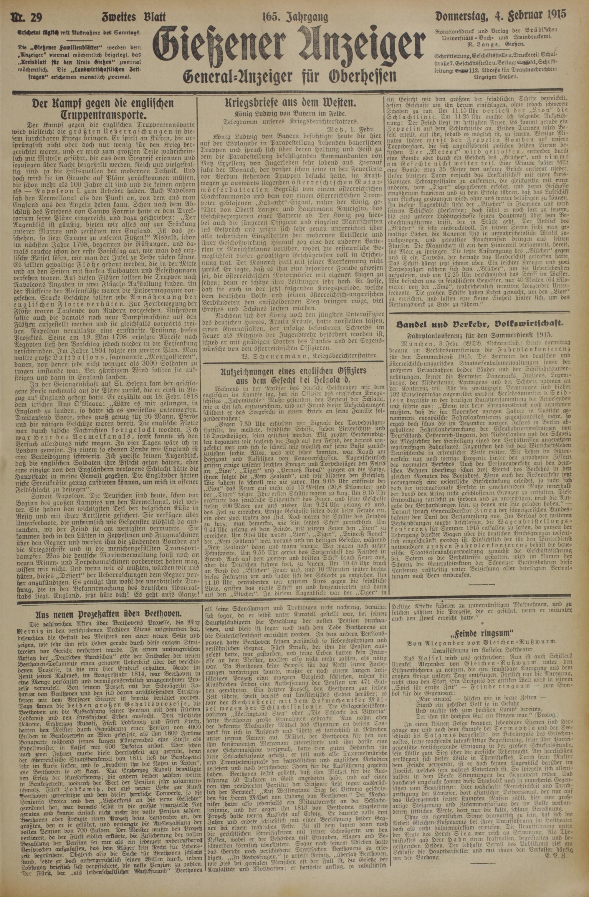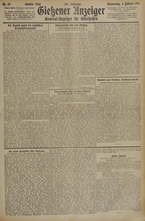 leuung: 112. Adresse für Drahtnachrichten. Anzeiger Gießen.
