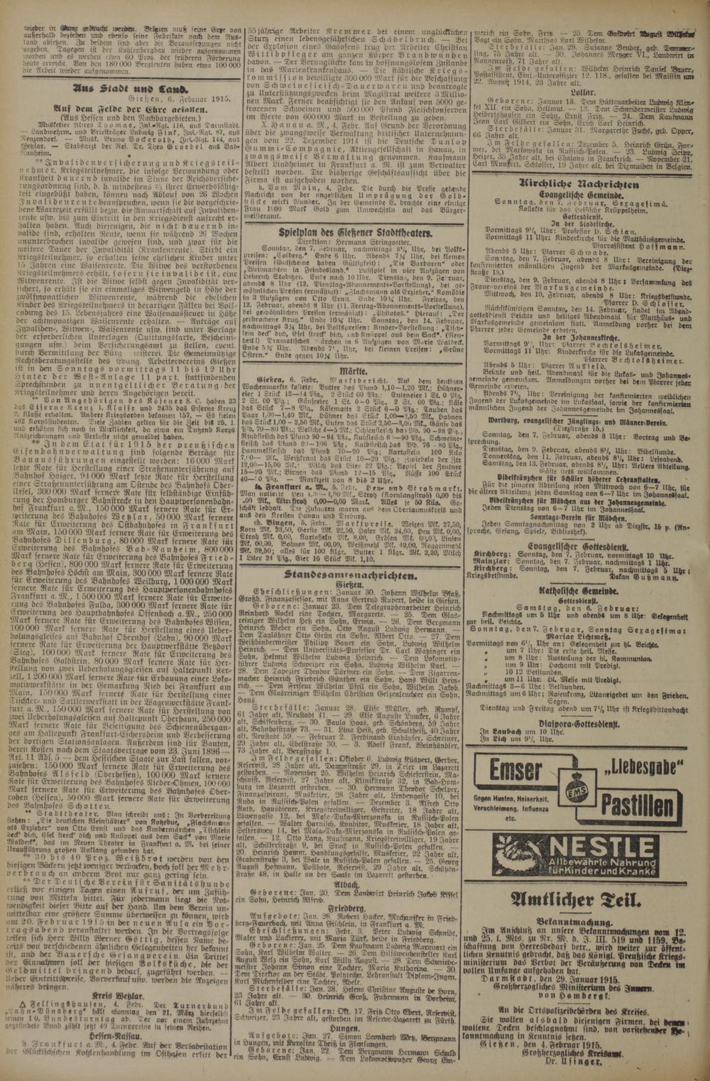kanntmachung in Kenntnis setzen. Gießen, den 4. Februar 1915. 6 Stoß e Kreisamt. Dr. 9 nge.— e 8