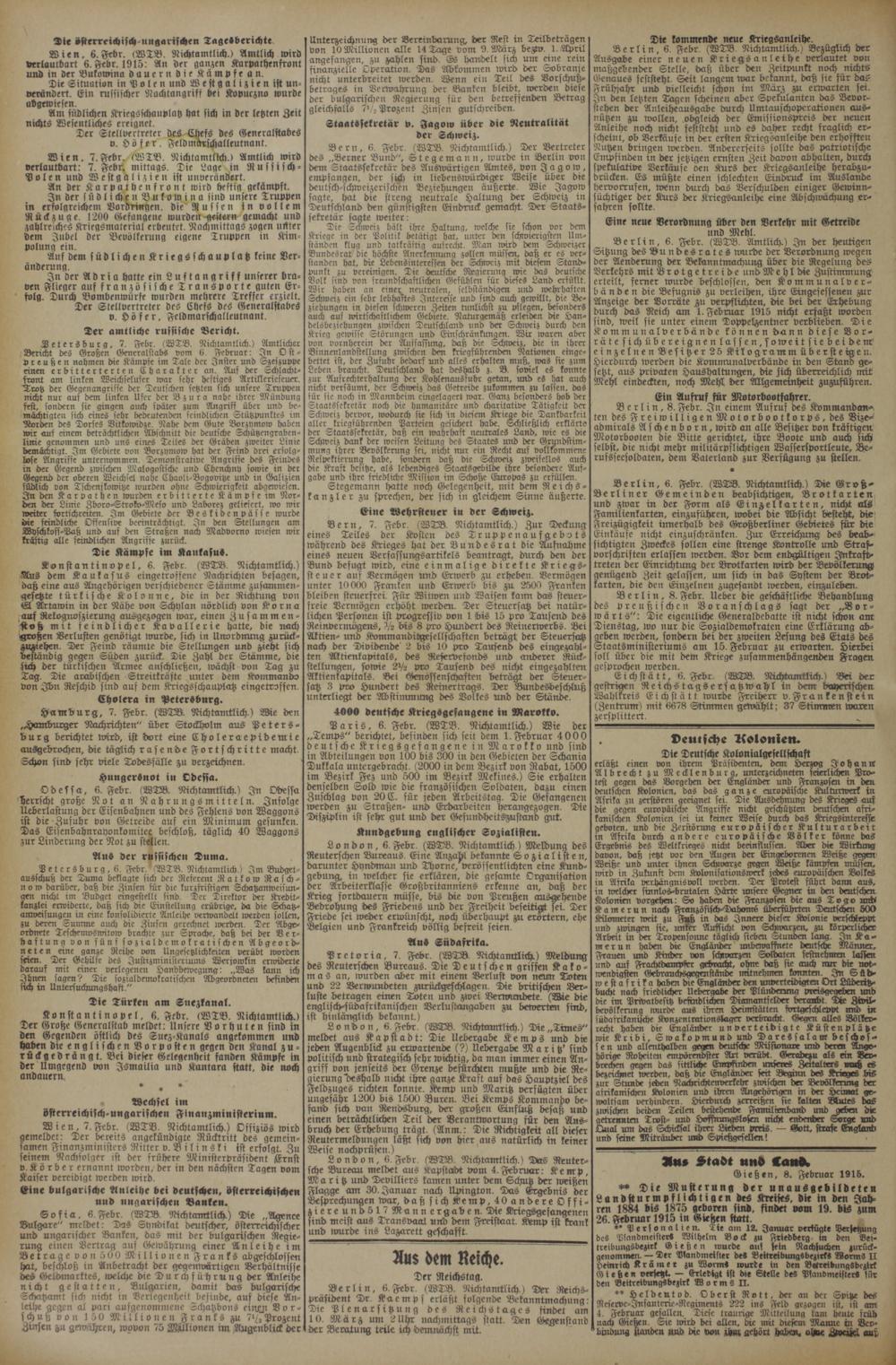 Aus Stadt und and. Gießen, 8. Februar 1915.