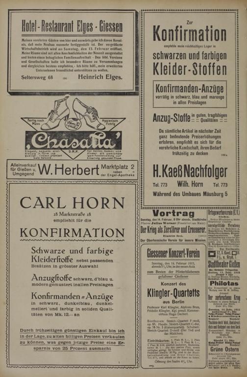 Sonntag, den 14. Februar, 8 Uhr abends, Stadtkirche Pfarrer Julius Werner(Frankfurt am Main):