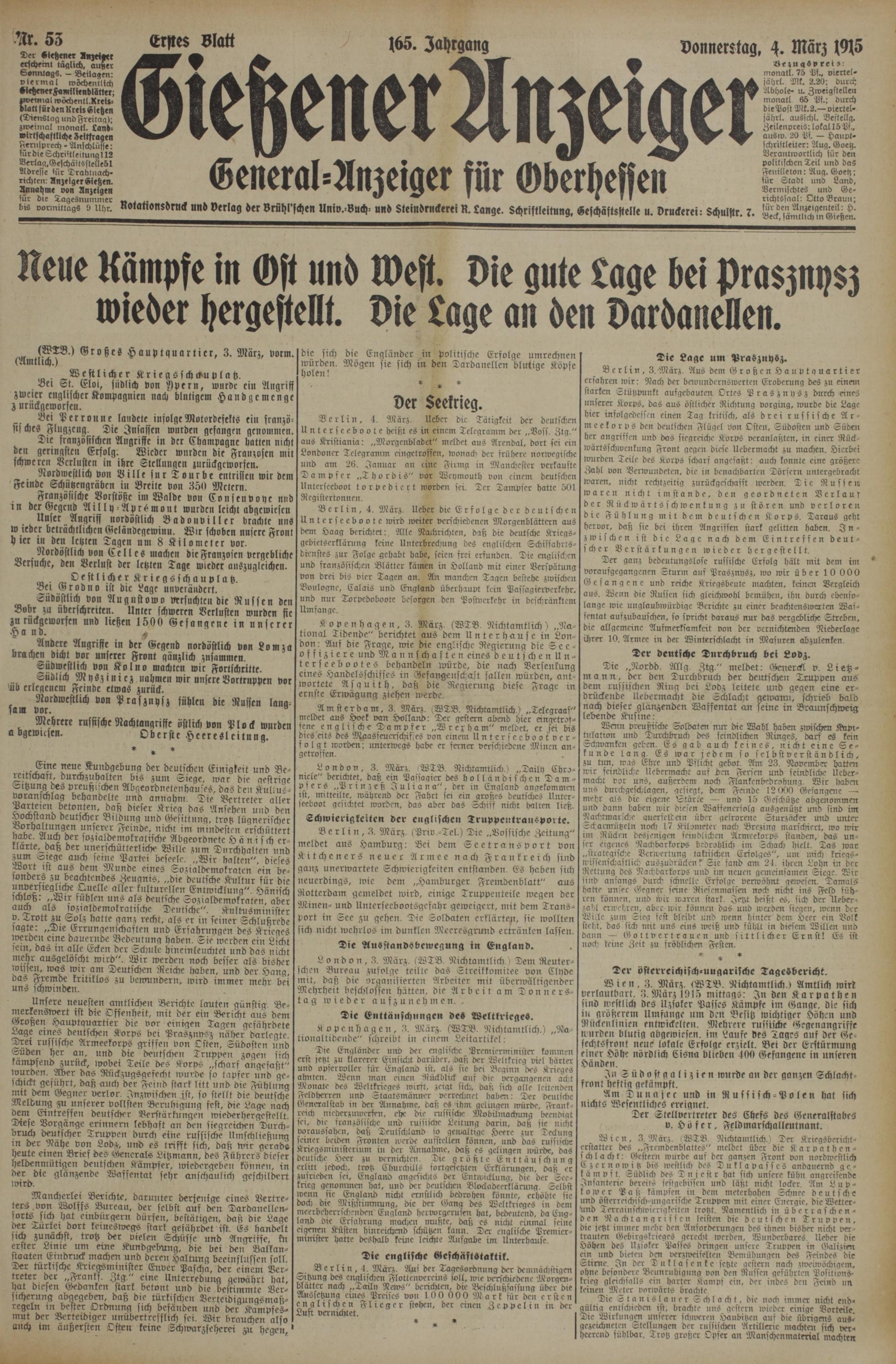 Verantwortlich für den politischen Teil und das Feuilleton: Aug. Goetz; für Stadt und Land, Vermischtes und Ge⸗ richtssaal: Otto Braun; für den Anzeigenteil: H. Beck, sämtlich in Gießen.