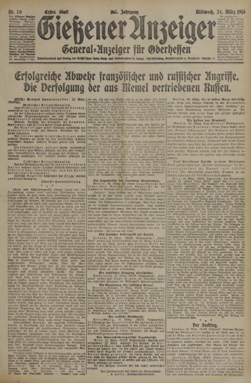 ) Sreßes Hauptguartier, 23. Marz.