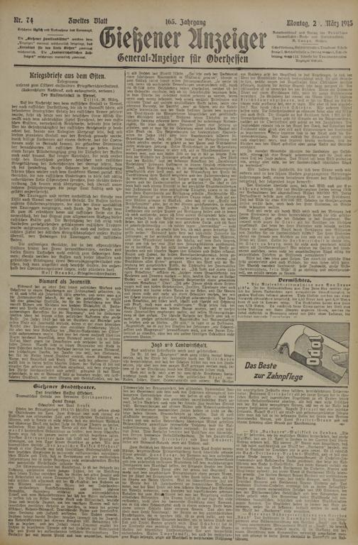 leuunmgz: S112. Adresse für Drahtnachrichtem Anzeiger Gießen.