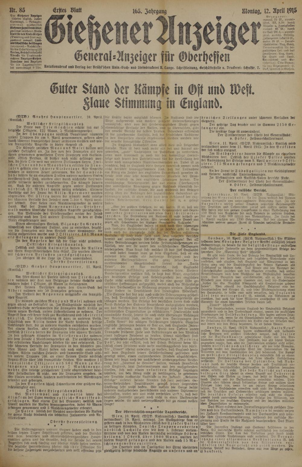 Guter Stand der Kämpfe in Ost und West. laue Stimmung in England.