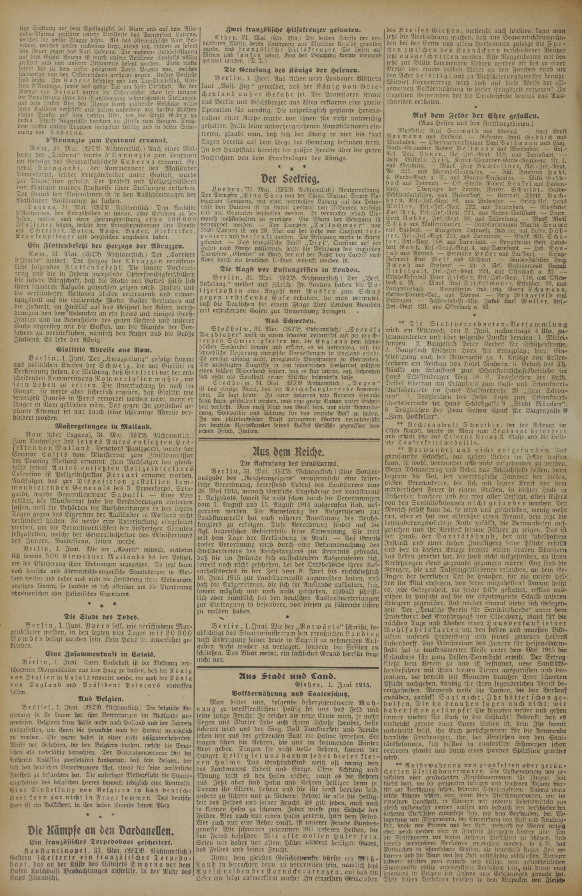 Aus Stadt und Land. Gießen, 1. Juni 1915. Volks ernährung und Saatenschutz.
