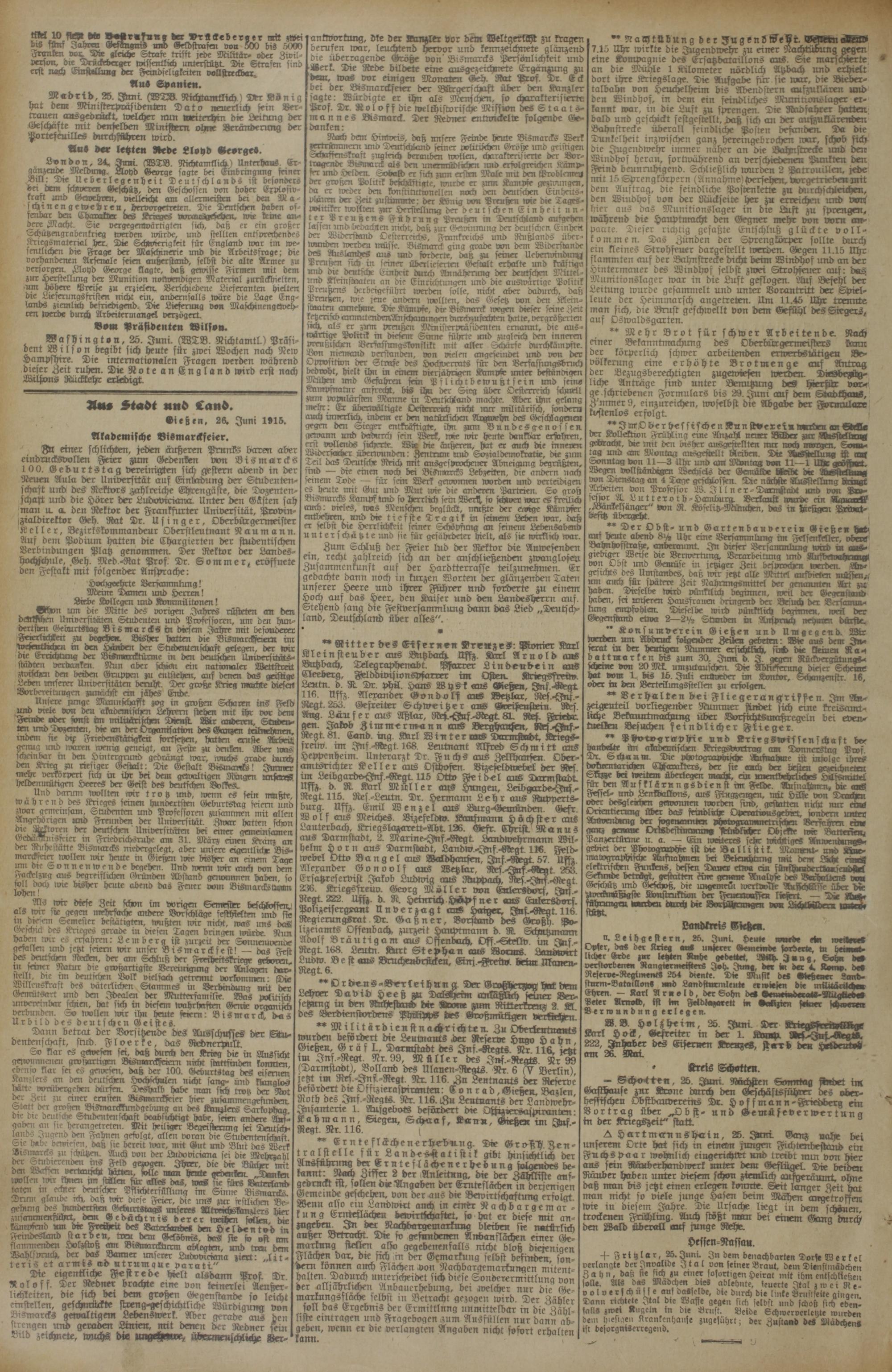 Ates Stadt und Cand. Dießen, 26. Juni 1915.