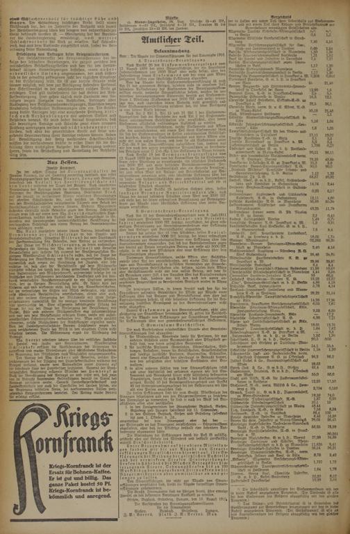Kkriegs-Kornfrancł ist der Ersatz für Bohnen Kaffee. Er ist gut und billig. Das ganze Paket kostet 50 Pf. Kriegs-Kornfrandc ist be- kömmlich und anregend.
