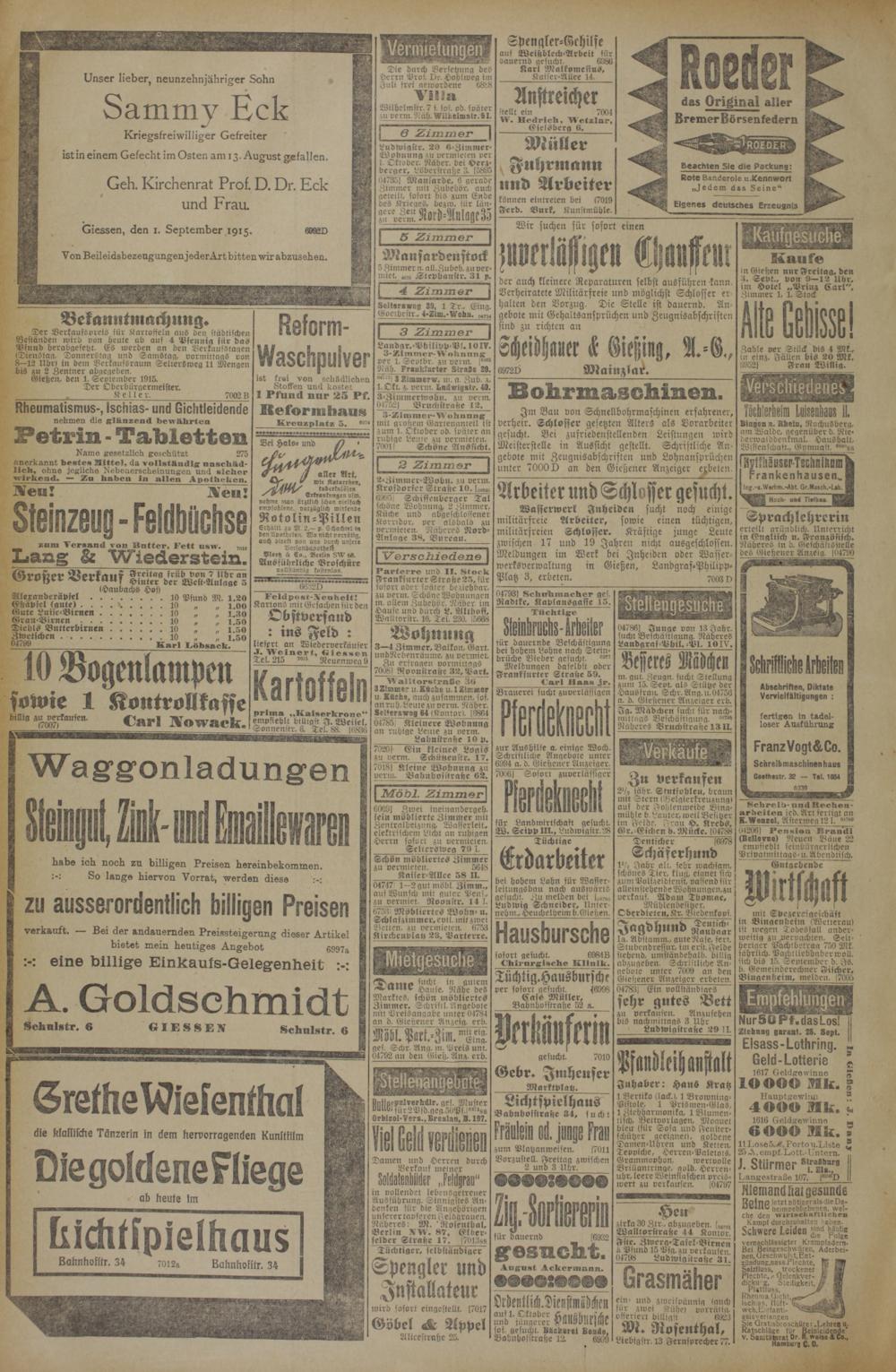 Ciessen, den 1. September 1915.