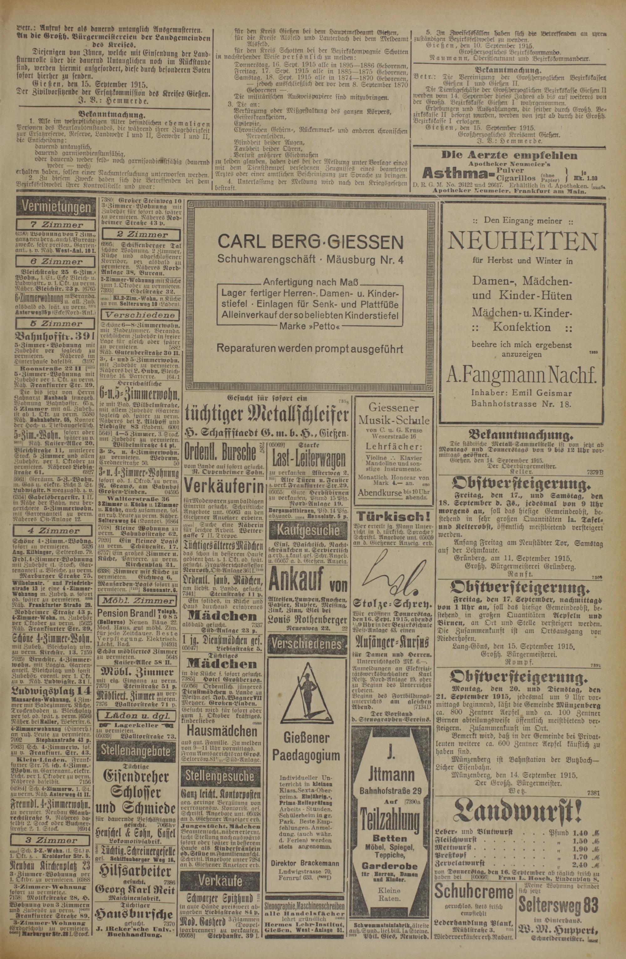 5. In Zweifelsfällen haben sich die Betreffenden an wren zuständigen Bezirksfeldwebel zu wenden. Gießen, den 10. September 1915. Großherzogliches Bezirkskommando. Naumann, Oberstleutnant und Bezirkskommandeur.