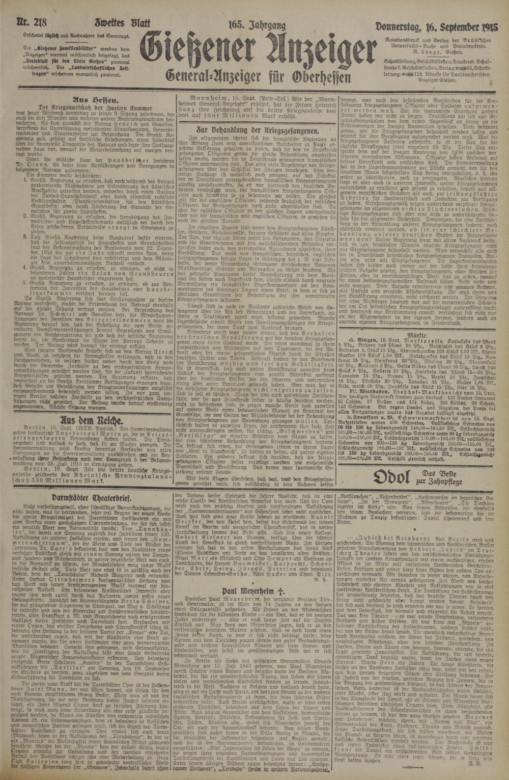 2 2 Rotationsdruck und Verlag der Brühl'sschen Universitäts-Buch- und Steindruckerei. Die„Sleßener Famillenblätter“ werden dem R. Lange, Gießen. „Anzeiger“ viermal wöchentlich beigelegt, das istleitung, G häftsstelle Drilckerzt. urelsblatt für den kreis Gießen“ zweimal SSchrüileltund Heschalkastele u. Druckeret e