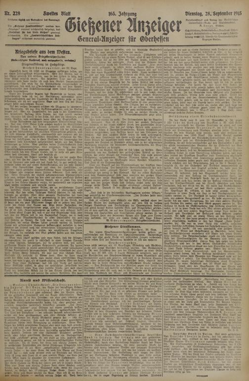 leitung: 112. Adresse für Drahtnachrichten: Anzeiger Gießen.