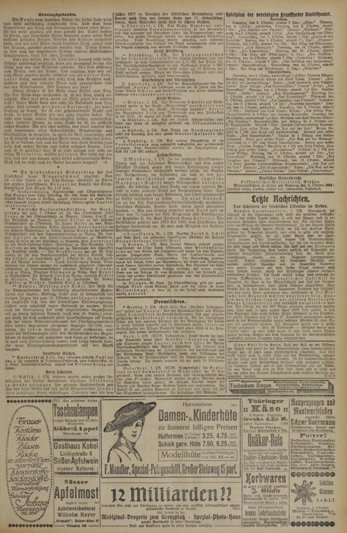 Frankfurt a. M., 1. Okt. Bankier Jacob H. Schiff aus New Pork, ein geborener Frankfurter, überwies der hiesigen Kriegsfürsorge 25000 Mark.