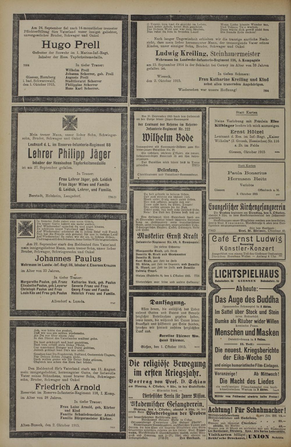 Gießen(Buddestr. 8), den 1. Oktober 1915.