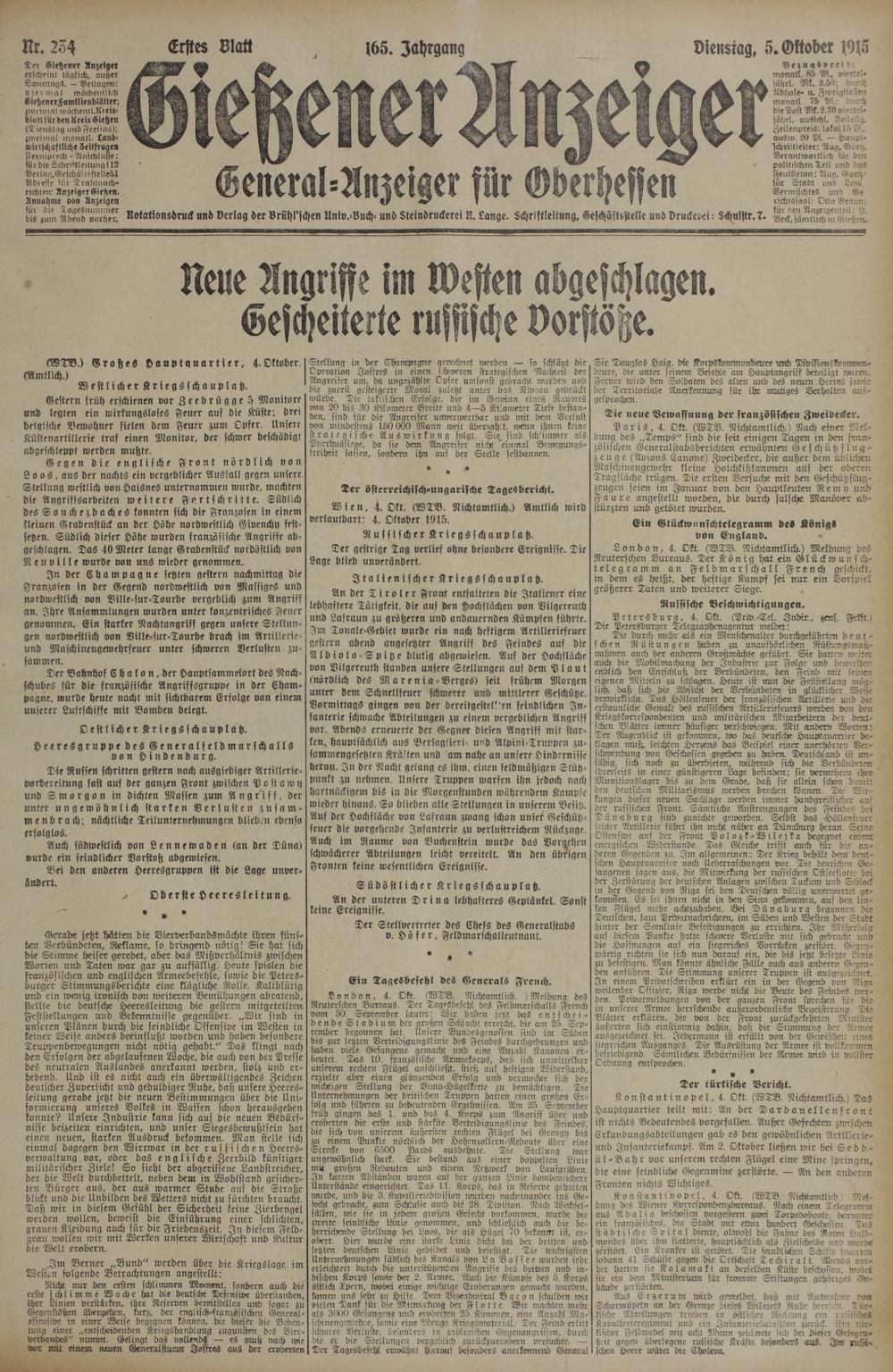 Der Giegener Anzeiger erscheint täglich, außer Sonntags.— Beilagen: