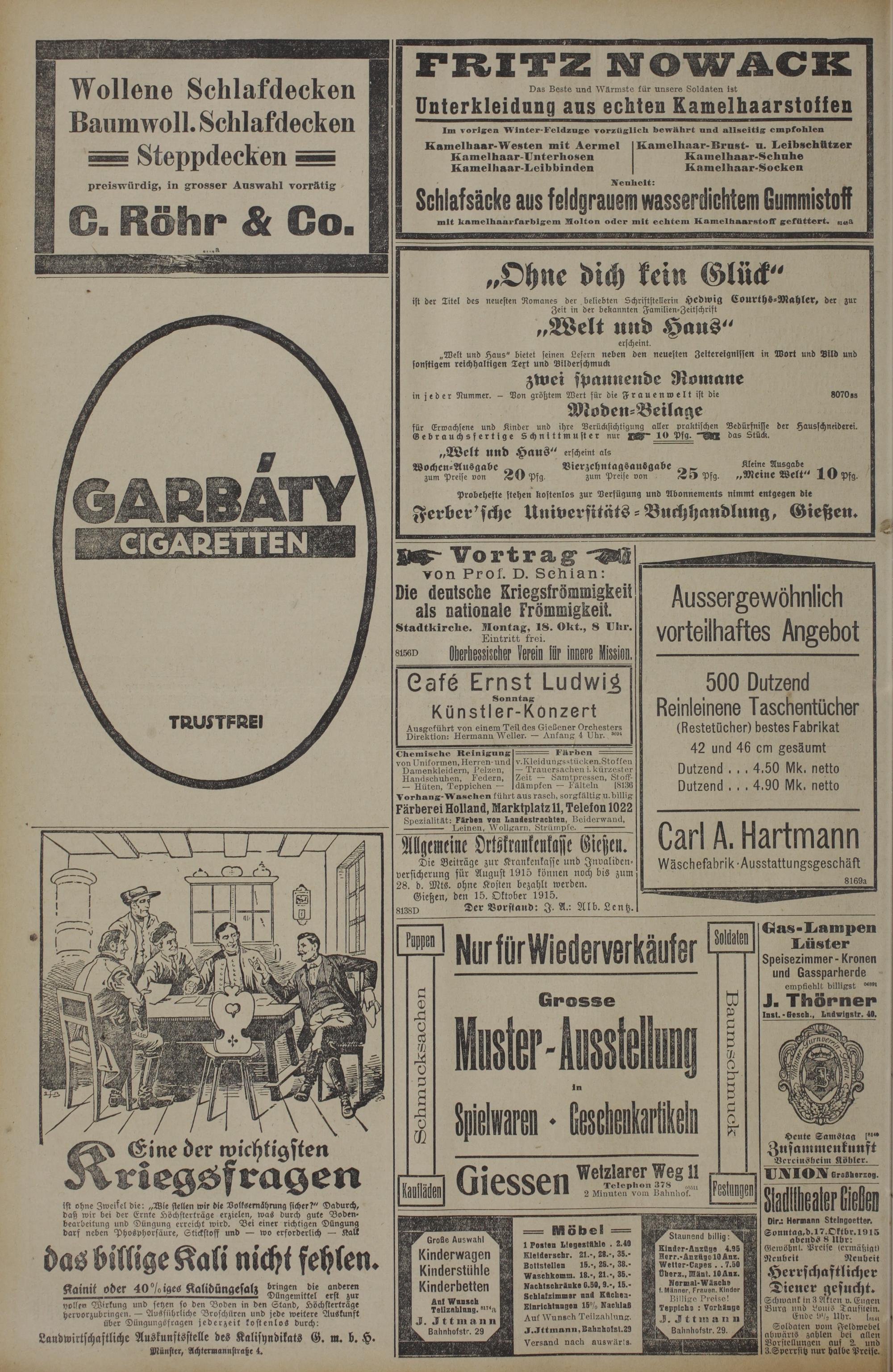 Gießen, den 15. Oktober 1915. Der Vorstand: J. A.: Alb. Lentz.