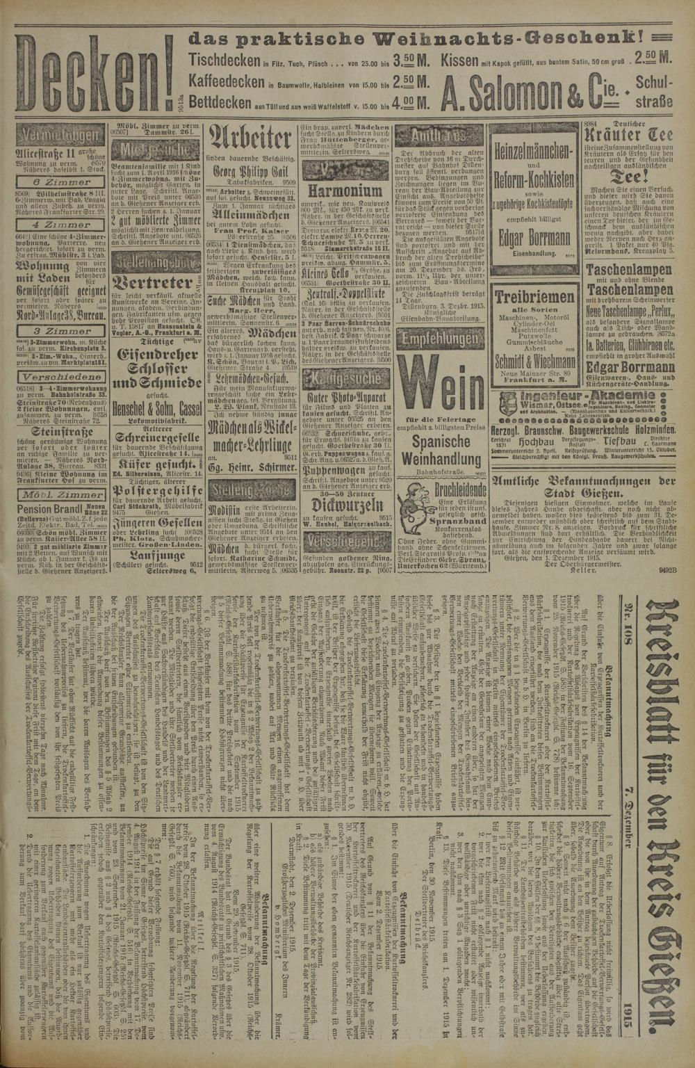 Gießen, den 1. Dezember 1915.