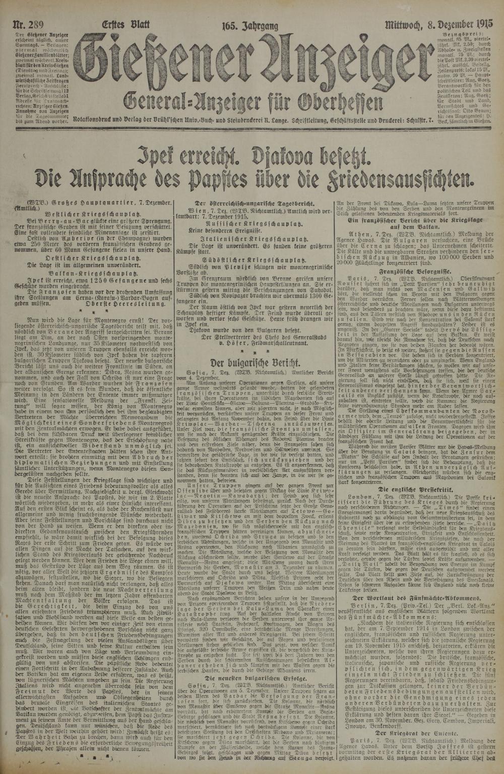 Mittwoch, 8. Dezember 1915
