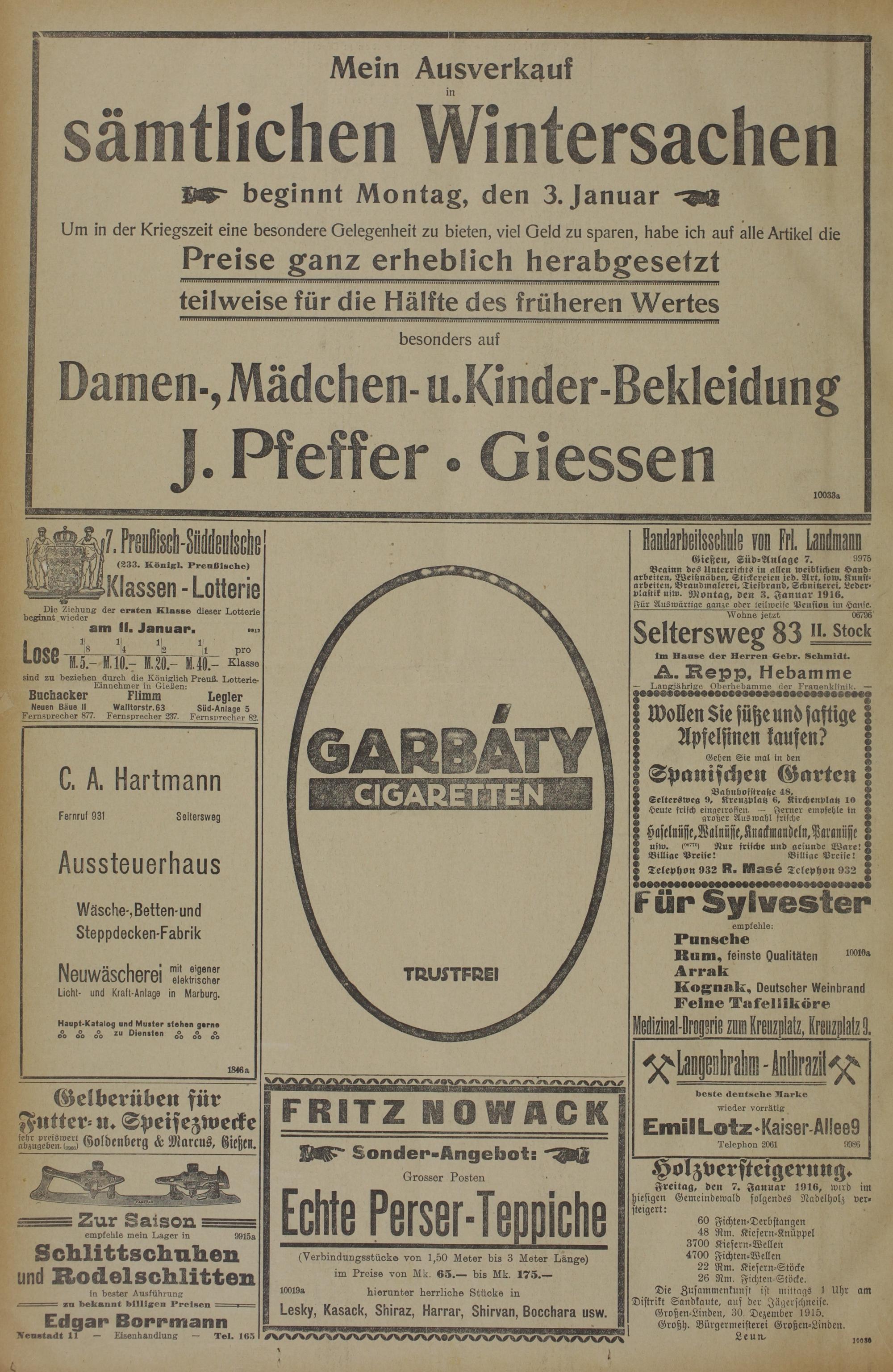 Großen-Linden, 30. Dezember 1915. Großh. Bürgermeisterei Großen-Linden.
