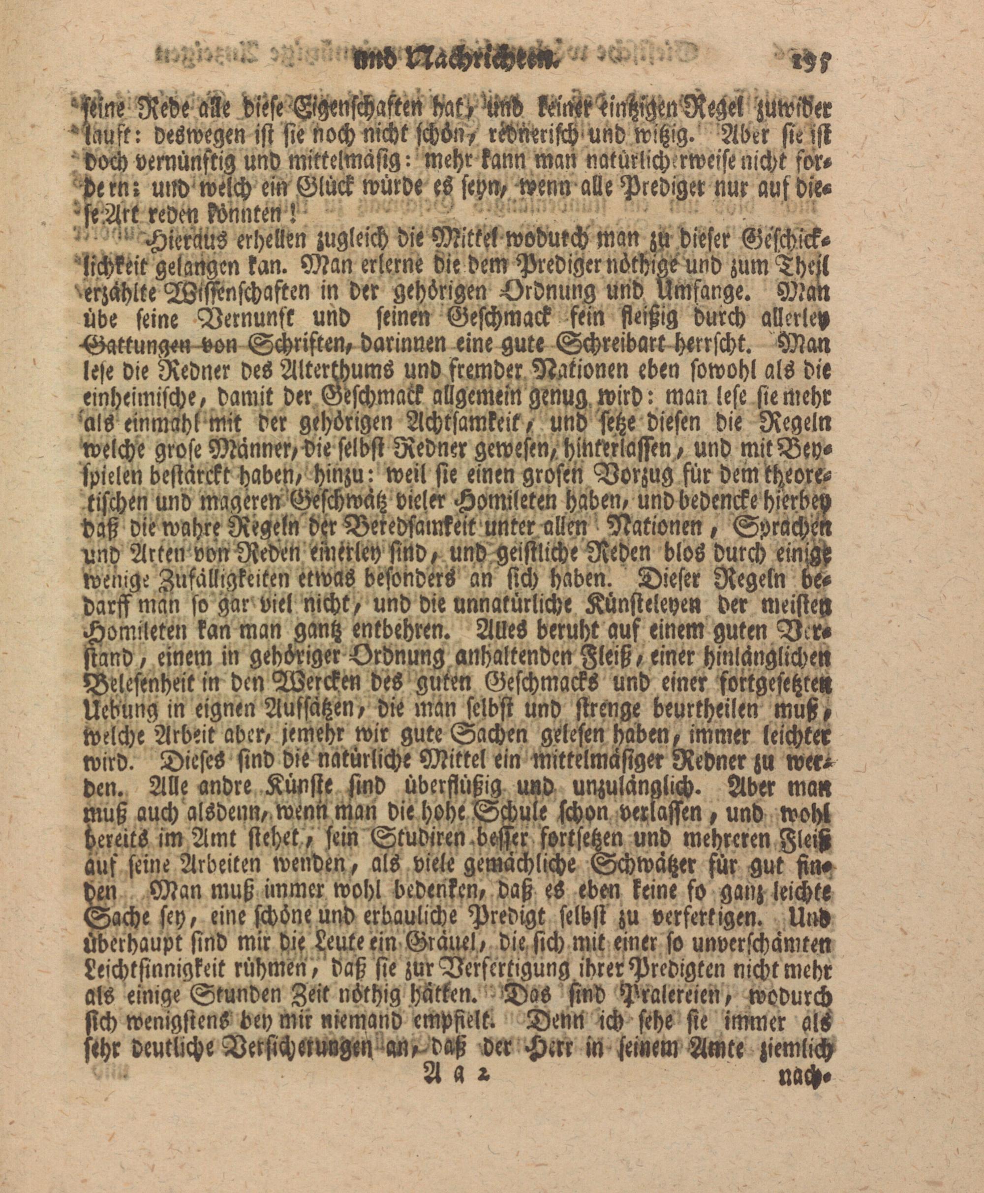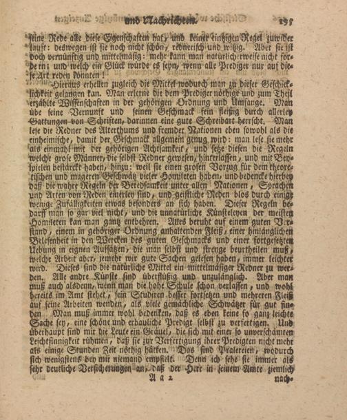 - feine Rede alt diese Ggenschastck -ak» keiiier einhigcn Reqe! zuwider Mciuff: deswegen ist sie Noch nicht schön- redmrifch'Und witzig. Ader sie ist ■ doch vernünftig und mittelmäsig: mehr kann man natürlicherweise nicht fordern; und welch ein Glück würde es seyn- wenn alle Prediger nur auf Die* *feW reden könnten!