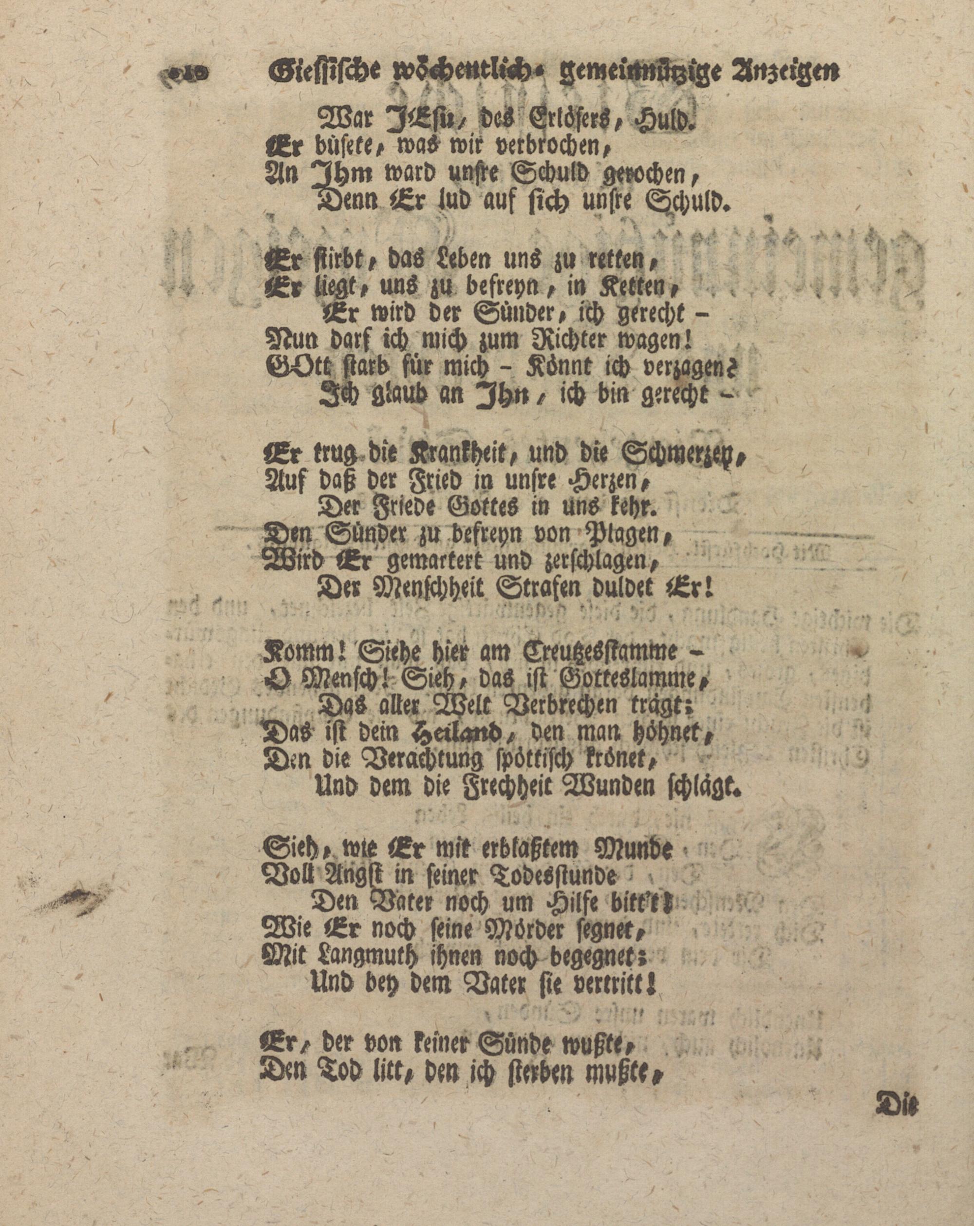Den Sünder zu befreyn von Plagen, ----- Wird Er gemartert und zerschlagen, Der Menschheit Strafen duldet Er!