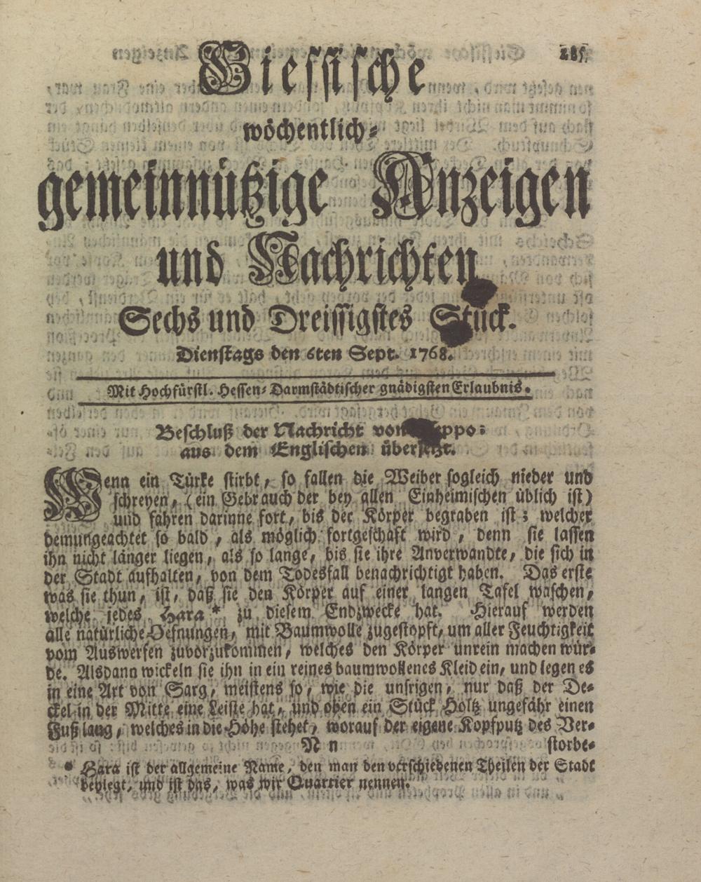 Mit Hochfürstl. Hessen- Davmstädtischer gnädigsten Erlaubnis.