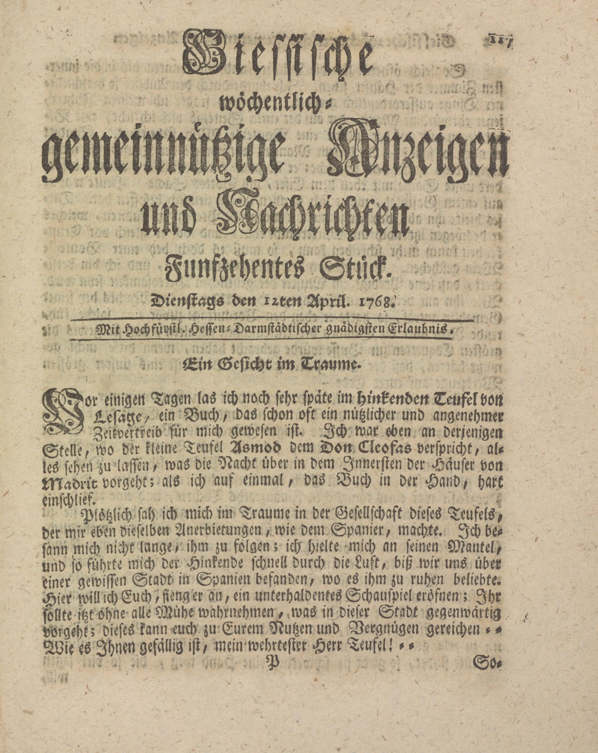 V- Mit HochfürM. Hessen-Darmstadtlschel- gnädigsten Erlaubnis»