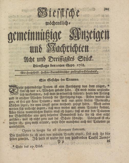 Dienstags den roem Sept- »768. MitHochfürstl. Hessen-Darmstädtischer gnädigsten Erlaubnis^