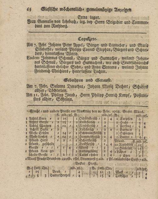 Am 7. Febr. Johann Peter Appel, Bürger und Leinweber, und Maria Elisabetha, weiland Philipp Conrad Stephan/Bürgers und Schneiders, hinterlassene Wittib.