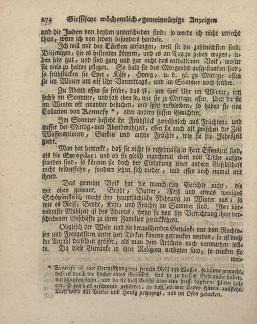 Ich will mit den Türken anfangen, weil sie die zahlreichsten sind. Diejenigen, die e- bestreike» k-nnen, und «S an Tag zu geben wagen, le. den sehr gut, und sind ganz und gar nicht da« enihalkjam« Volk, wofür sie viele ru halten pflegen. So bald sie des MorgendS aufgestanben (ine, so frühstücken sie Eher, Käse, Honig, u. d. gl. zu Mitrage essen sie im Winter um eilfUhr Vormittag-, und im Sommer noch früher.