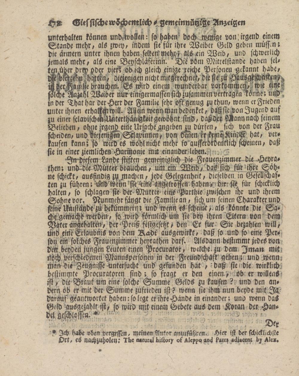 unterhalten können unt>MHen: so haben doch wenige von: irgend einem Stande mehr, als zwey, indem sie'für ihre Weiber Geld geben müssen r die armem unter ihnen haben - selten' mehr ? alMn Weib, und schwerlich jemals mehr, als eine Beyschlaftrinn. 'Dievöm Mittelstände haben jel- tmMer Drrp pd;r Vieri ob ich gleich .einige reiche. Personen gekannt habe, dK ^leWkm -hgtckn, diejenigen nicht mitgerechnek, die sie zü HauögWcWn- ZSerDamste brauchen ES wird einem wunderbar vorkommen., wie eine- «lche MMHl Weiber nur einigermassen sich zusammen vertragen könne; und in Der That har der Herr der Familie sehr ost genug zuthun, wenn er Frieden unter ihnen erhakkchwill. Allein wenn man bedenket, daß-sie von Jugend auf zu einer sclavisch^Mterthänigkeit gewöhnt sind, daßder Mannnach seinem Belieben, ohne jrgenj) eine Ursache Wgeben ru dürfen, sich von der Frau scheiden, und RiejeniFm Stlavmnen, von Men kHmtzKinM hat, verkaufen kann; so wird es Wohl nicht mehr so aufferdtdeNtlich scheinen, daß sie in einer ziemlichen Harmonie mir einander leben..