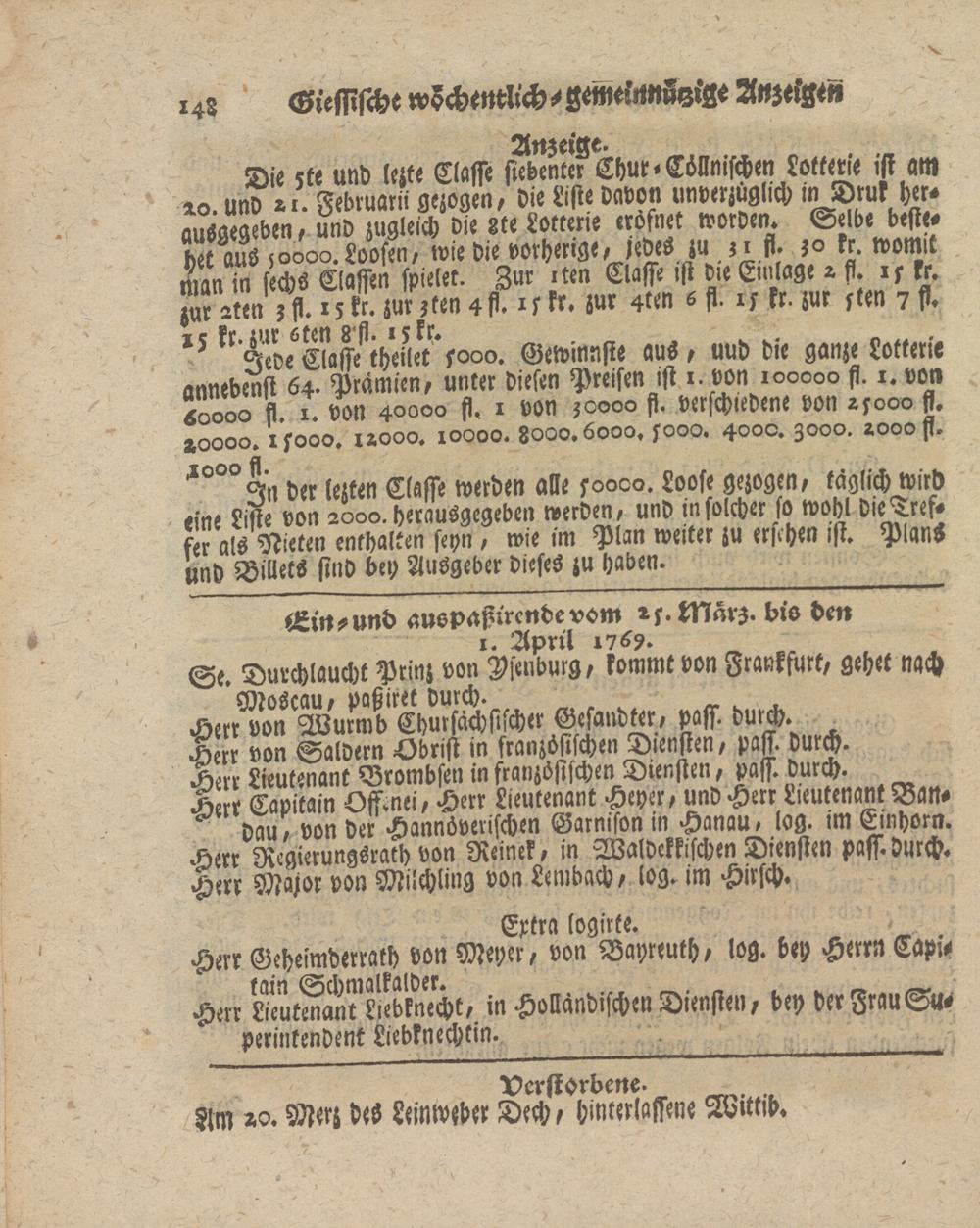 Ein-und auspaßrrcndevom is-Mär;. bis den i. April 1769.