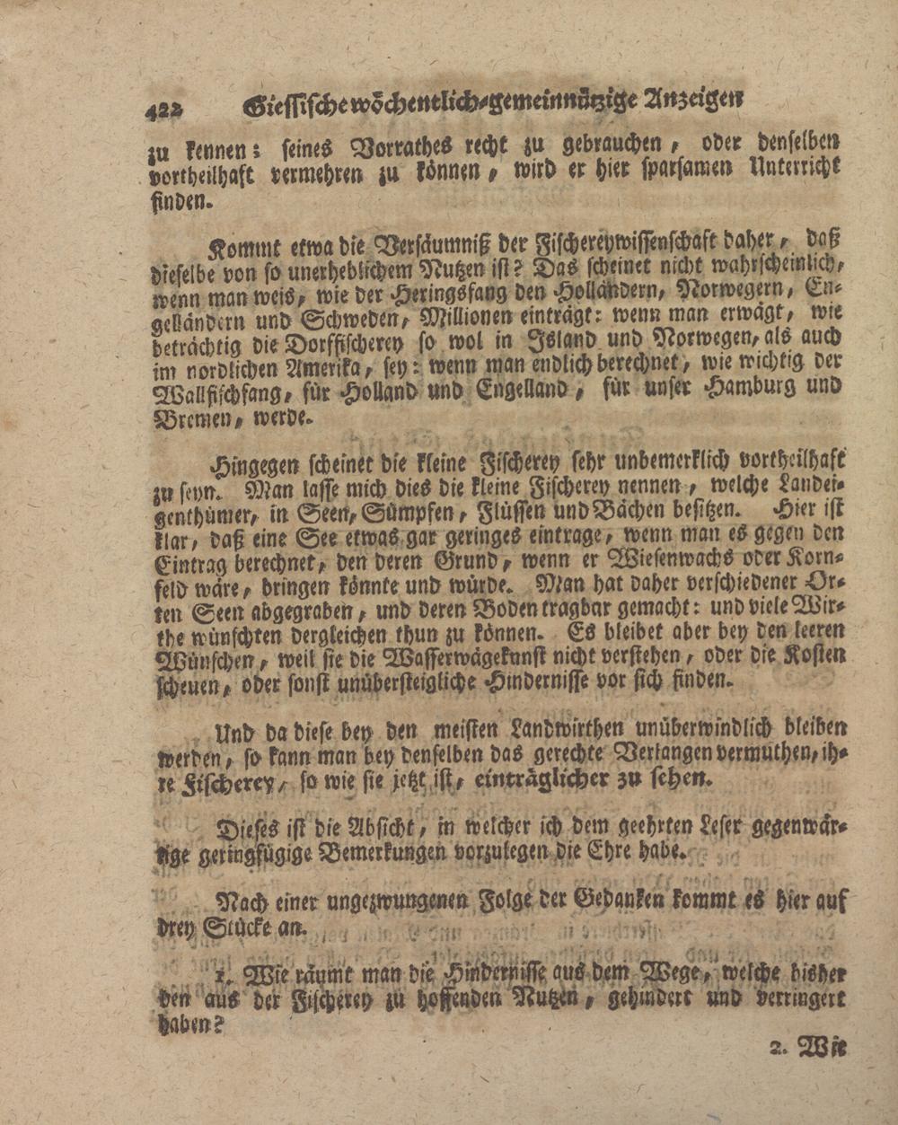 Und da diese bey den meisten Landwirthen unüberwindlich bleiben werden, so kann man bey denselben das gerechte Verlangen vermuthen,ihre Fischernt so wie sie jetzt ist, einträglicher zu sehen.