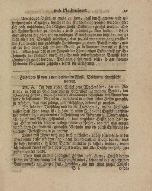 Diese rhun meinem gnädigsten Fürsten und Hörrn, Höchst denen- felben die Verbesserung des Nahrungsstandes, besonders des arbeitsamen Sandmannes, am Herzen liegt, sowohlen, als mir einen grosen Dienstr