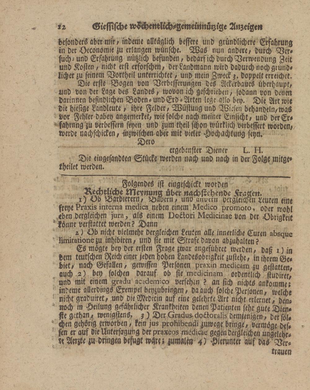 i) Ob Barbierer», Bauern, und «llverki vergleichen teuren eine freye Praxis interna medica neben einem Medico promoto, oder wohl eben dergleichen jura, als einem Dottori Medicinae von der -Obrigkeit