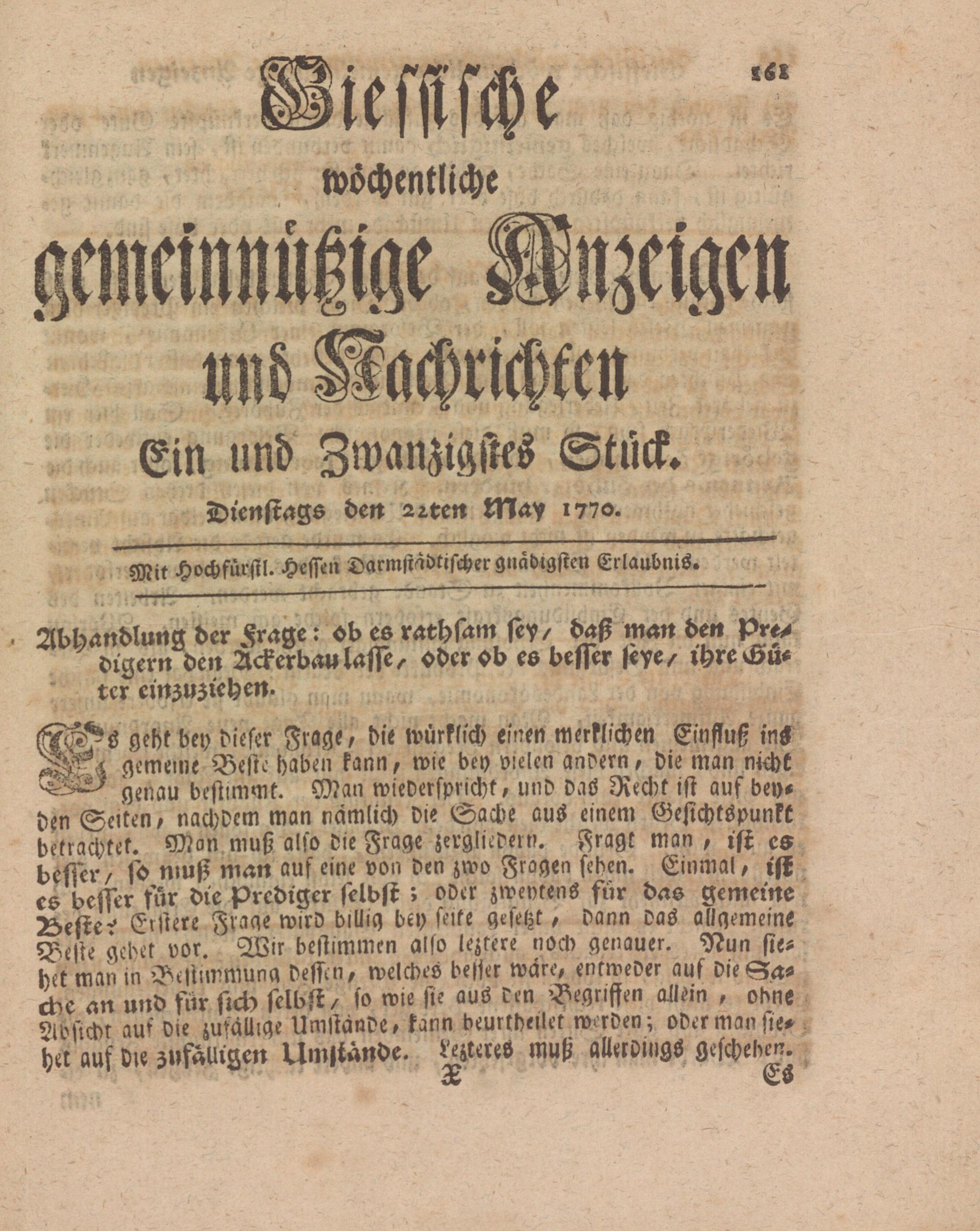 SDJit Hochfürstl. Hessen Darmstädttscher gnädtgsten Erlaubnis.