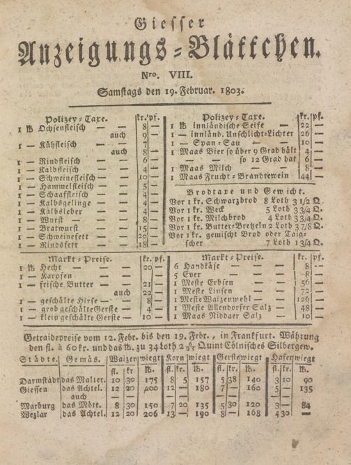 Getraidepreise vom 12. Febr. bis den 19. Febk., in Frankfurt. Wahrung den fl. a 60fr- unddasft.zu Z4Loth 2^QuintCölnisches Silbergew.